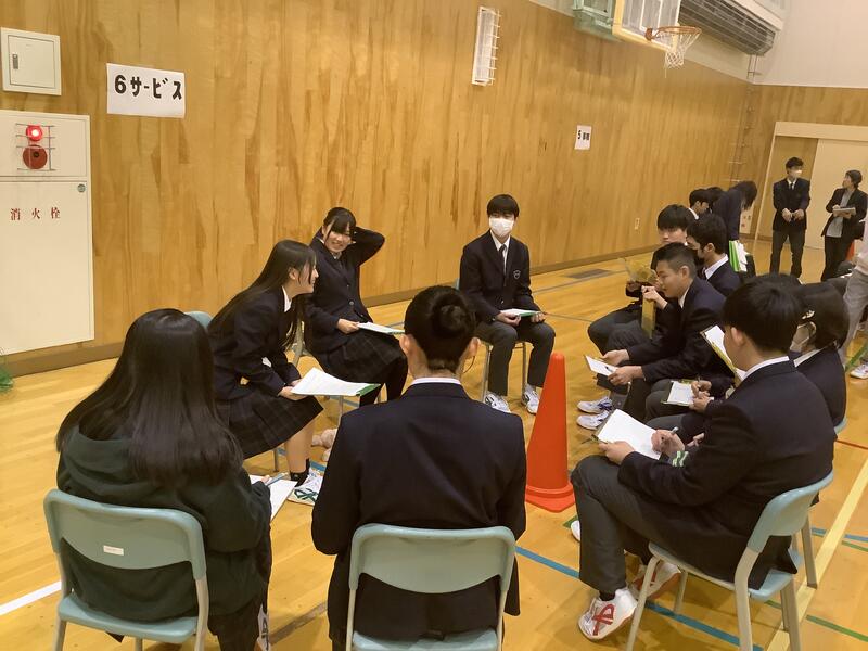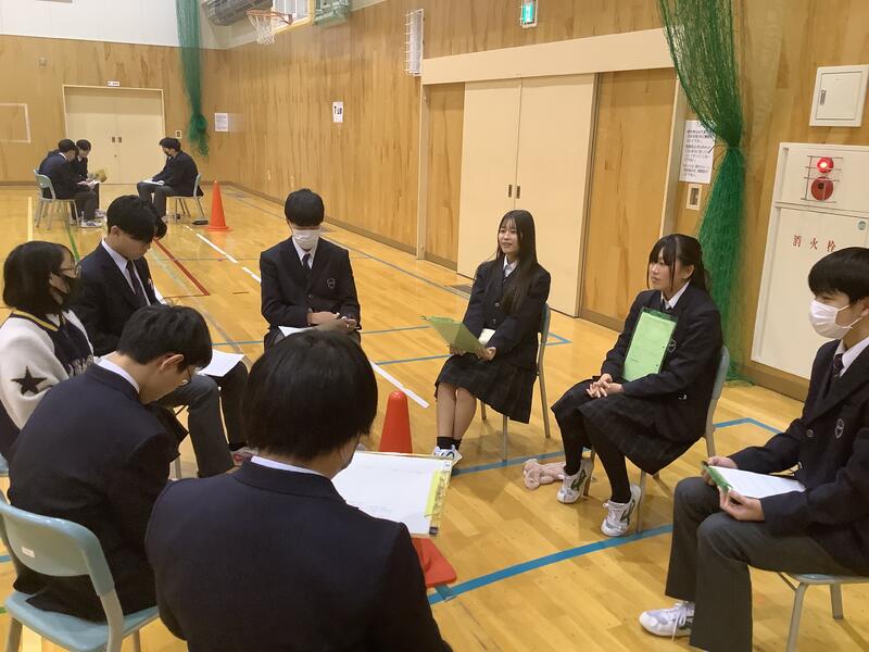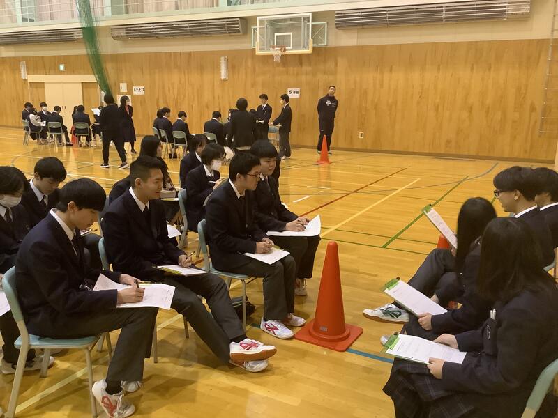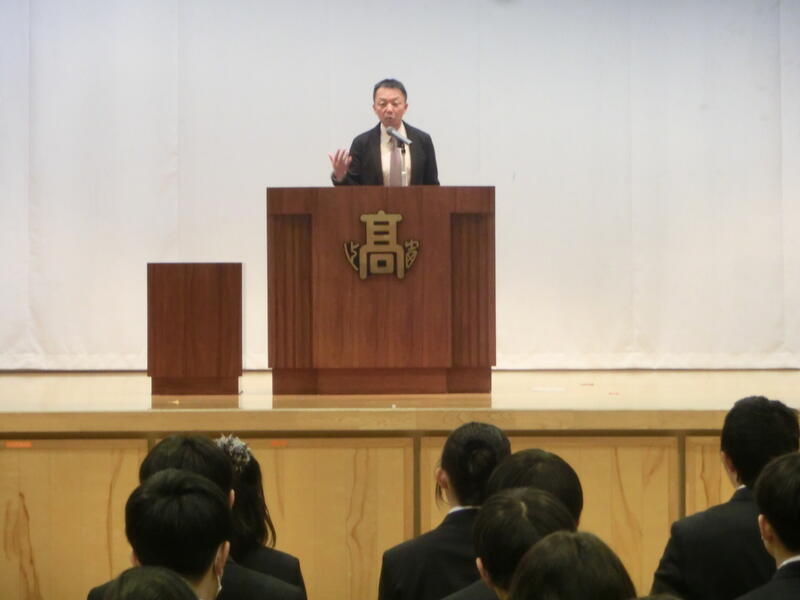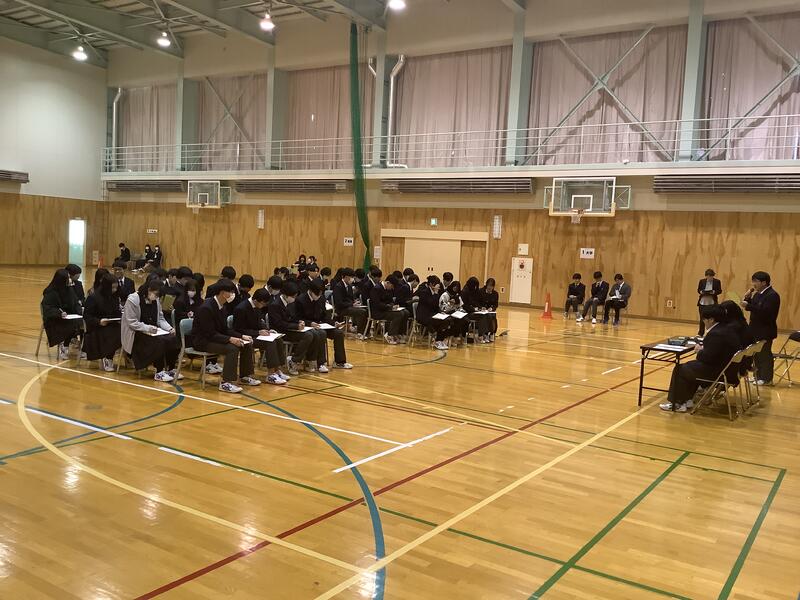 12月23日(火)3年生の進学合格者・民間企業内定者から試験内容や進路決定にあたっての心構えや準備の方法などの体験を、1・2年生は教えてもらいました。
