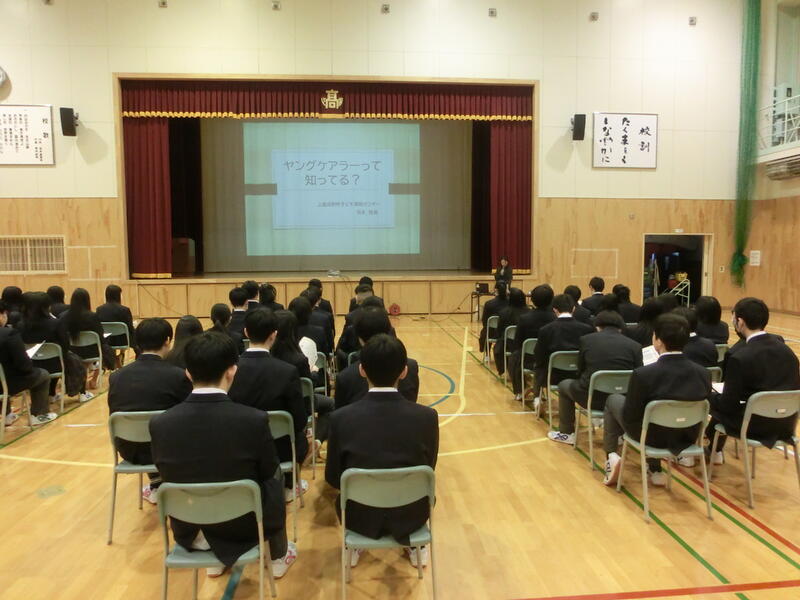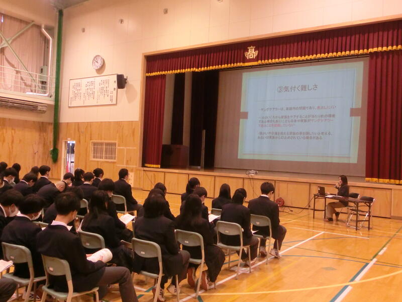 12月25日(木)全校集会に先立ち、上富良野町子ども家庭センターの坂本智美様から「ヤングケアラー」について講習を受けました。清掃コンクール表彰の後、「命の大切さ」について校長講話がありました。