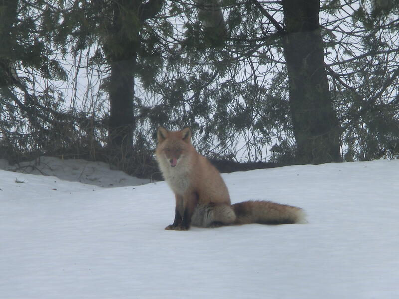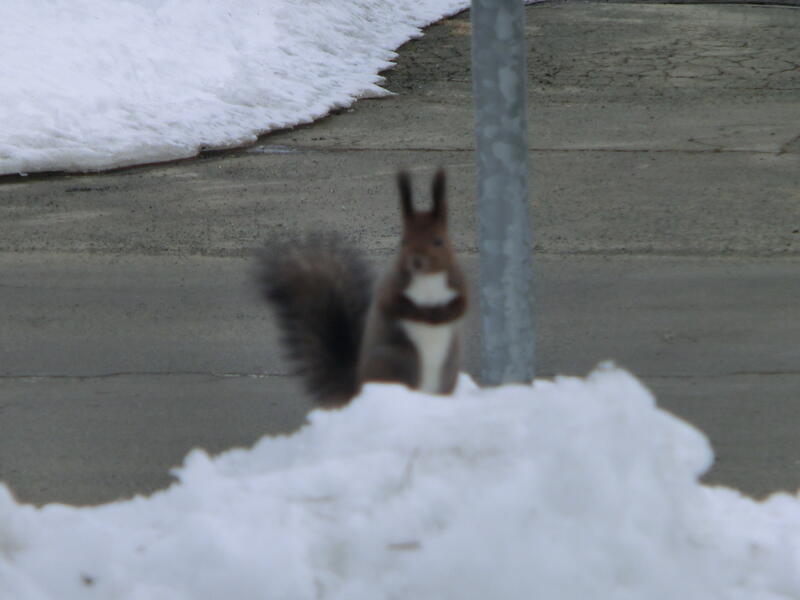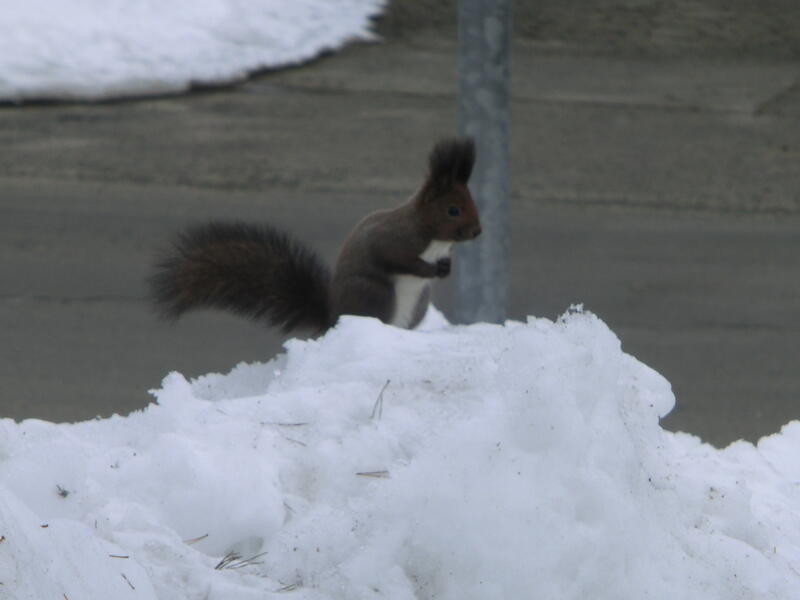 2月27日(金)校庭にリスとキツネが遊びに来ました。今日は卒業式予行・同窓会入会式です。