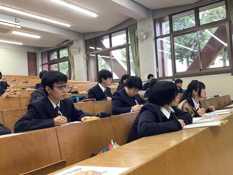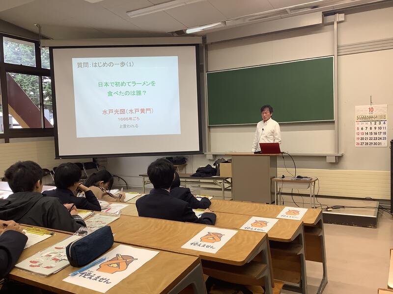 市立大学では、到着後に昼食をとりました。お弁当持参の生徒もいれば、学食を利用する生徒もいて、学食は美味しく好評でした。午後は江口尚文教授による「旭川ラーメンの経営学」の模擬授業を受講。ラーメンの歴史や札幌との違いなど、興味深く楽しい内容でした。