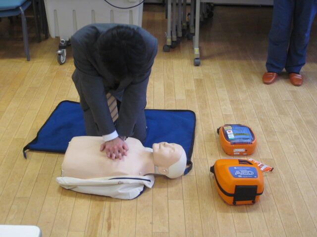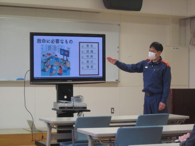 11月26日(水)教職員の校内研修において、消防署から2名の講師をお招きし、救急救命講習会を実施しました。AEDやエピペンの使用方法や心臓マッサージの方法を再確認しました。